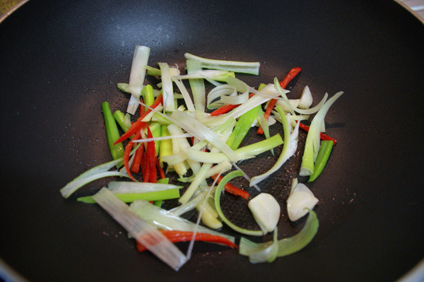 - 3. 대파와 청·홍고추는 어슷하게, 양파는 굵게 채 썬다.
