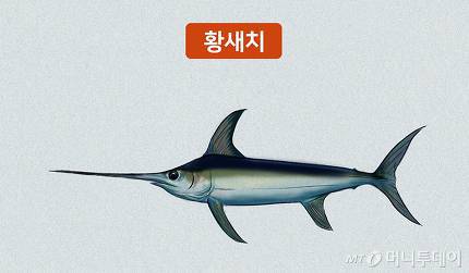 새치류 중 가장 고급으로 크기가 4m 전후로 매우 크며 활동 범위가 넓어 제주도 남해에서 온열대 해역까지 널리 분포한다. 황새치는 우리나라에서 횟감으로 많이 사용되며 뱃살 부분을 많이 사용한다. 참다랑어가 더 고급 어종이지만 새치류 중에서는 황새치를 가장 높게 친다. 살의 색이 유백색을 띄며 기름기도 제법 많아 고소한 맛이 난다.