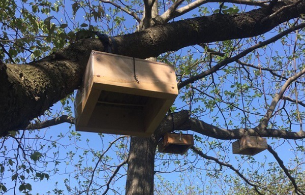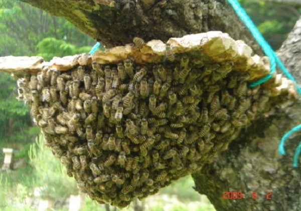 그래도 낮게 날지 않고 높이 올라 높은 나뭇가지에 올라앉은 벌들은 나무를 타고 올라가 직접 자루에 벌 무리를 자루에 담아 내려와야 한다.