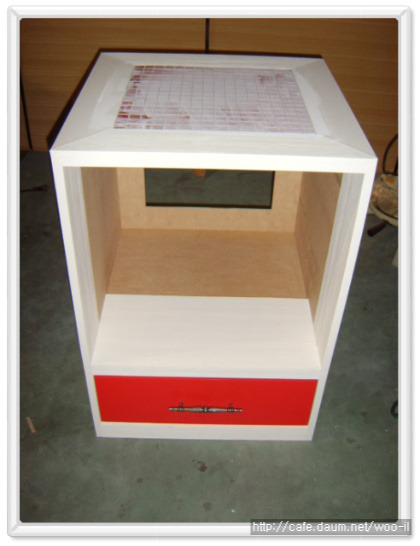 서랍을 제작하고 상판과 같은 색으로 빨강색 시트지을 작업했습니다.