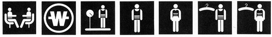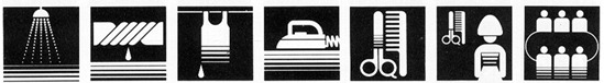 또한 숙박시설의 표현에 있어서는 병원의 표시와의 혼돈을 피하기 위하여 램프를 곁들여 편안하게 휴식할 수 있는 곳이라는 표현을 하였고, 휴지를 버리는 곳은 사람이 허리를 굽힘으로서 좀더 적극적인 자세를 표현했다고 한다.