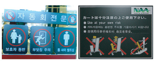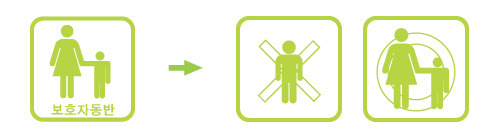 보호자 동반이라는 픽토그램은 백화점이나 대형마트에서 흔히 볼수있는 픽토그램이다. 하지만 보호자 동반이란 문자가 없다면 쉽게 이해할수 없는 픽토그램이기도 하다. 이처럼 문자가 없으면 이해하기 힘든 픽토그램은 외국인이나 문자가 모르는 경우는 이해하기가 쉽지가 않다.