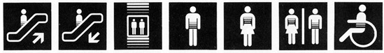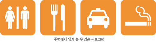 화장실이나 엘리베이터 또는 금연 등과 같이 우리가 쉽게 알수 있는 Pictogram은 그 형태나 컬러가 조금 바뀌어도 쉽게 알수있기 때문에 다양한 방법으로 사용된다 해도 문제가 되지않는다.
