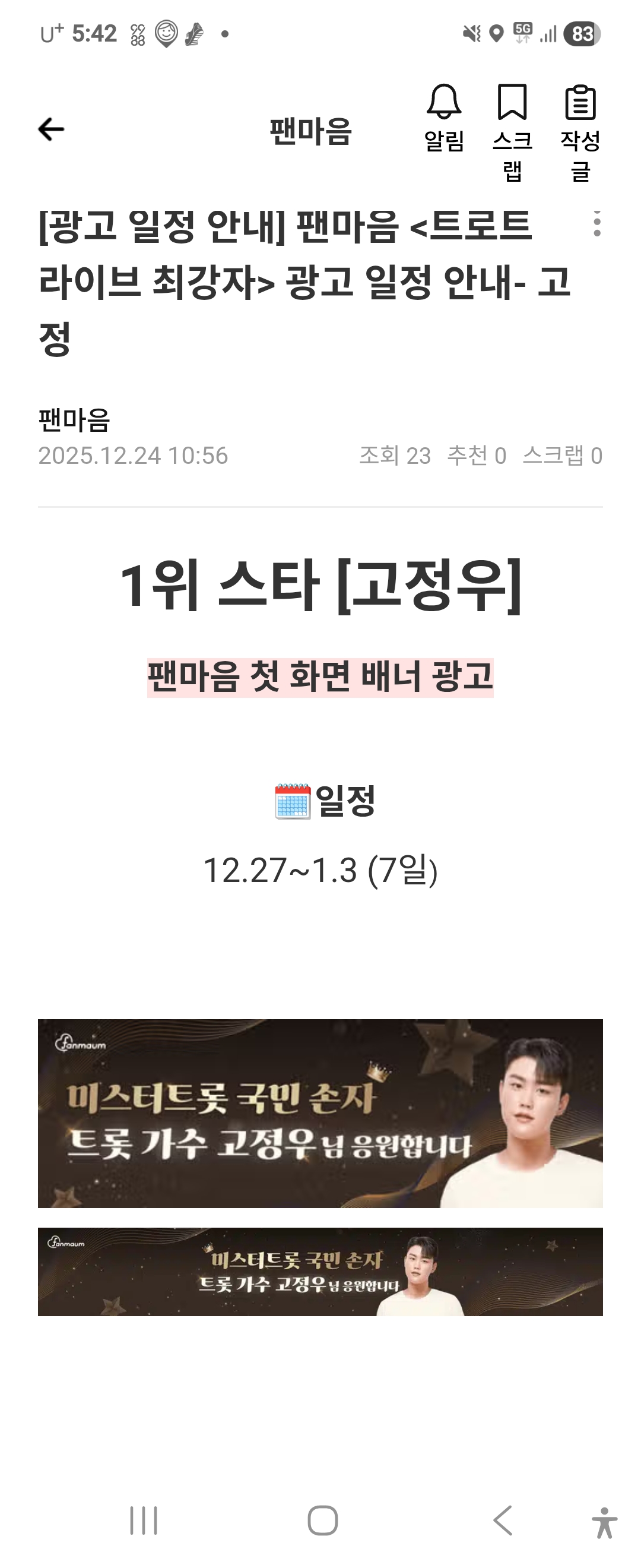 작성자눈꽃 (천안) 작성시간 25.12.26 우리 가수님 최고👍