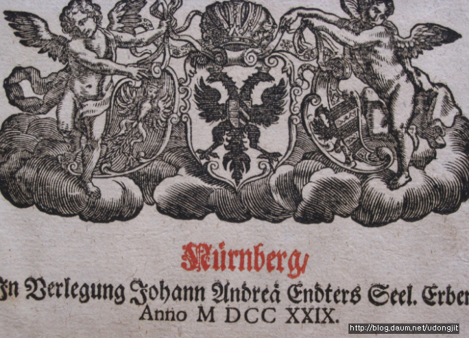 뉴른 베르크에서 1729년(Anno M DCC XXIX)에 인쇄했다고 되어 있습니다.