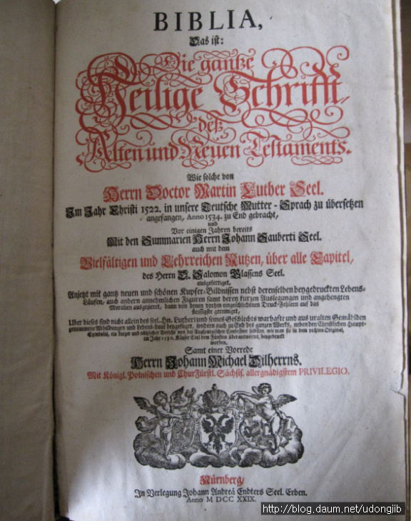 1729년 (Anno M DCC XXIX) 에 발행된 루터성경,