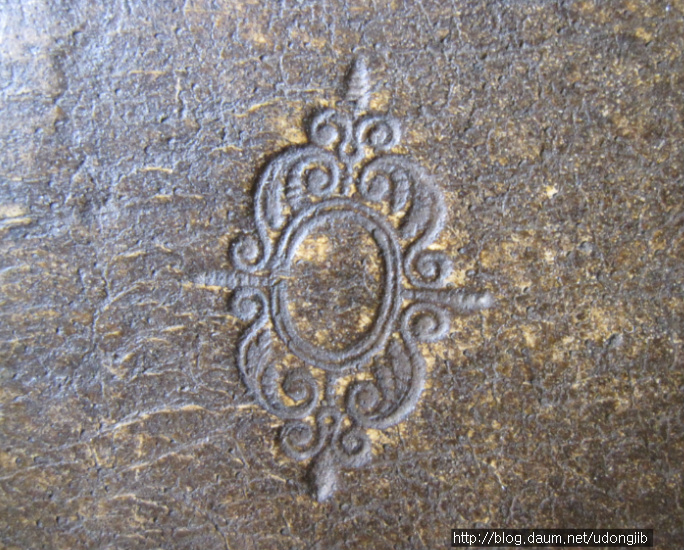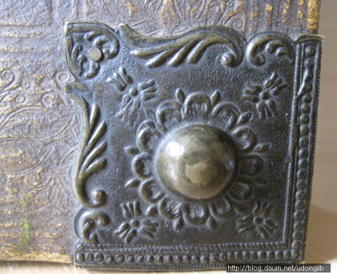 아름답게 도안된 동 장식으로 마감을 했고요, 가죽표지에 그림이 그려져 있습니다.