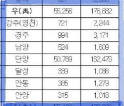 또한 통계청의 통계에 포함되지않은 또 다른 本을 가진 禹氏의 호적등본을 본 일이 있습니다.