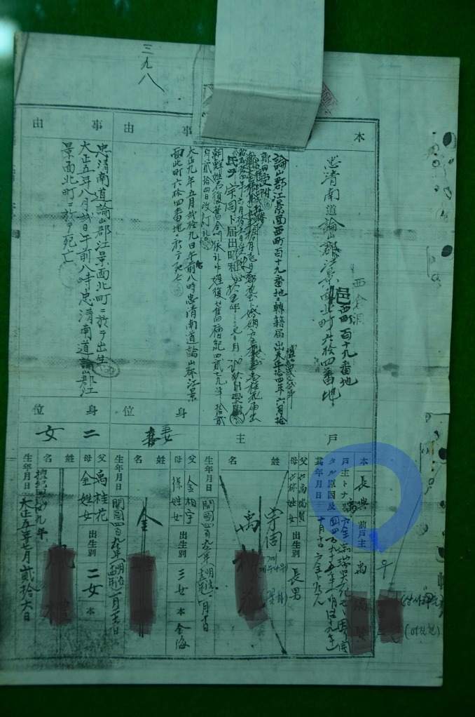 12개의 또 다른 본에 포함되지 않은 장흥 우씨를 호적등본을 통해서 확인하였습니다