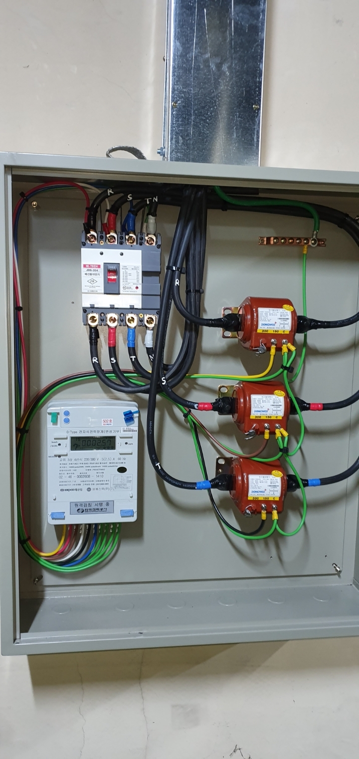 전기계량기를 신설하여, 전기요금고지서가 별도로 나올 수 있도록 공사하였는데, 고전류를 사용하는 사업체의 경우 변류기를 이용하여 계량기작업을 진행해야합니다.