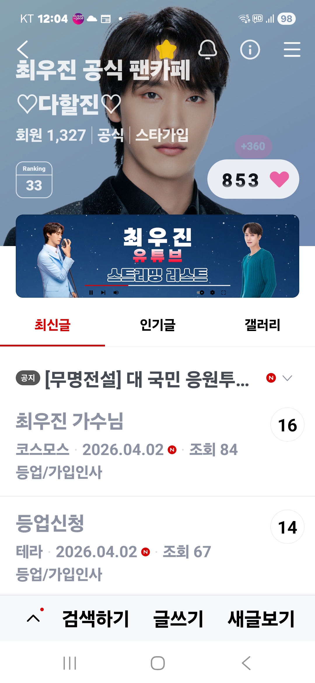 하트인정 작성자오통장(동래)|작성시간00:05|조회수7 목록 댓글 0 글자크기 작게가 글자크기 크게가 다음검색 현재 게시글 추가 기능 열기 북마크 공유하기 신고 센터로 신고 댓글 댓글 0 댓글쓰기 답글쓰기 댓글 리스트