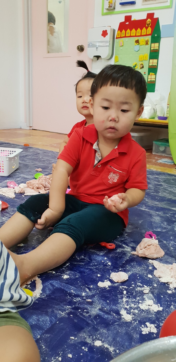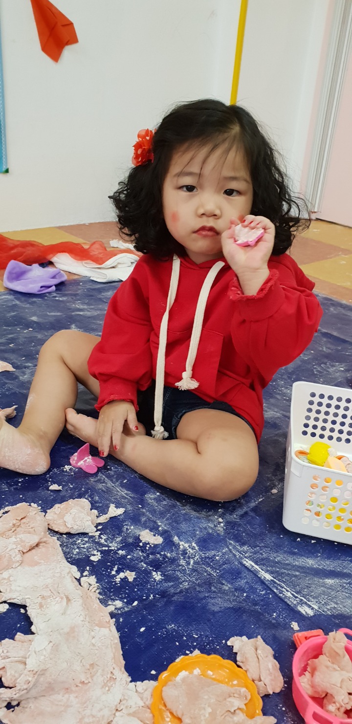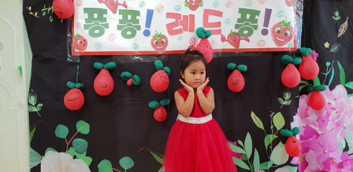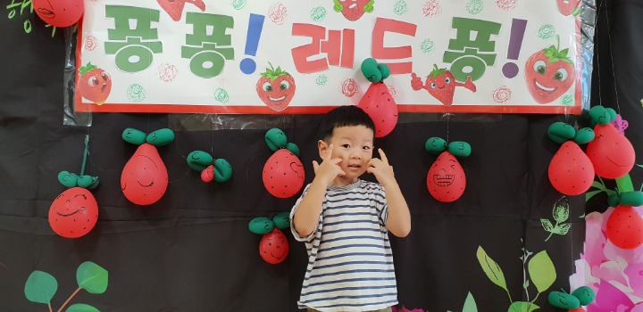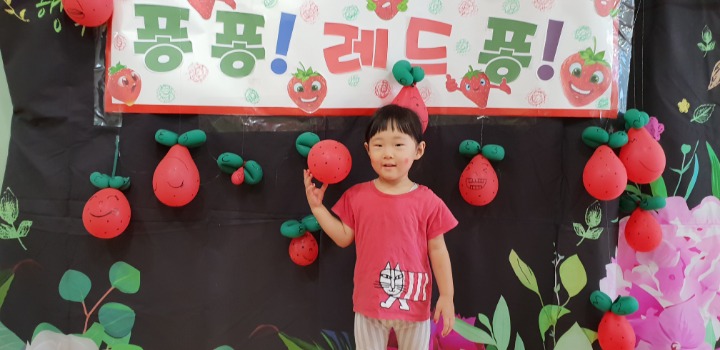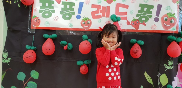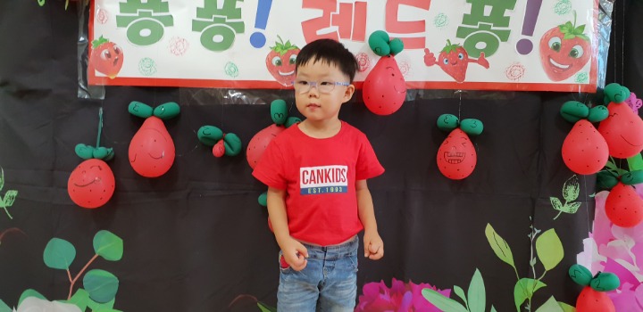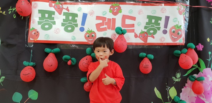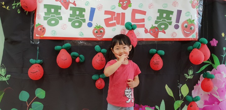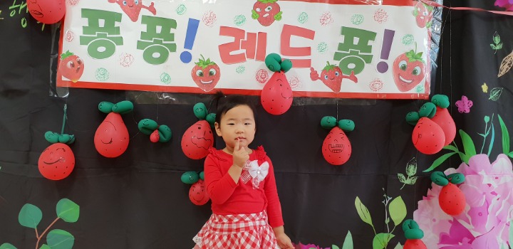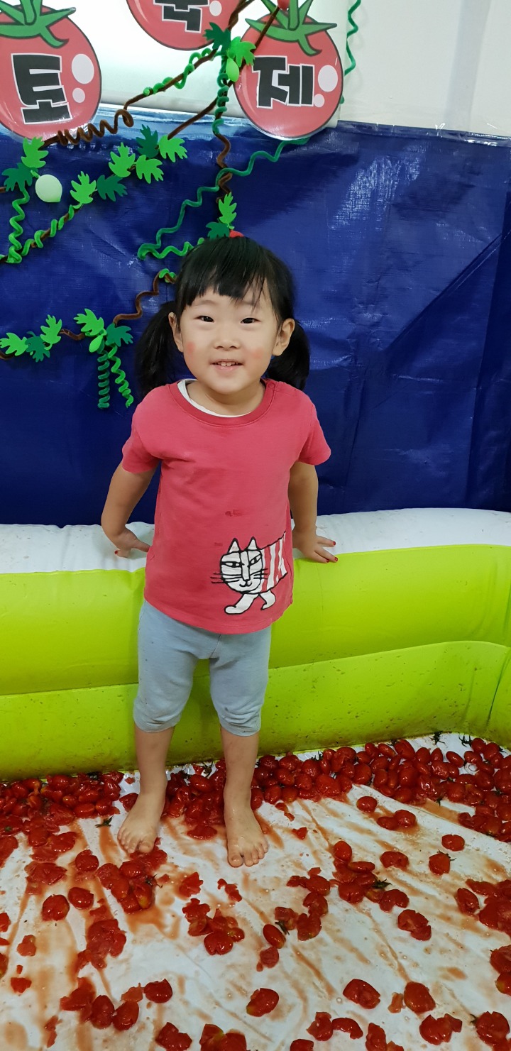 빨강색 옷을 입고 등원한 친구들 어린이 집에오니 현관에는 빨강풍선들이 가득하고 빨간토마토에 빨간 레드카펫이 우리 친구들을 맞이 합니다 레드카펫에 가서는 멋진 가발과 안경을 쓰고 포즈를 취하며 사진을 찍고 가루야 가루야 방으로 이동 핑크색 밀가루반죽을 주물럭거리고 모양틀에 넣어 예쁜 모양도 만들어 보았어요 그다음으로는 토마토 밟기를 하는시간 우리 친구들 처음에는 들어가지 않으려고 하더니 들어가서는 그래도 토마토를 밟아 주네요~~~