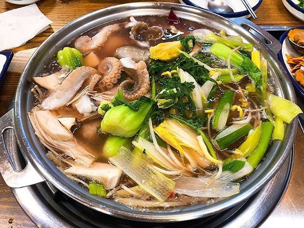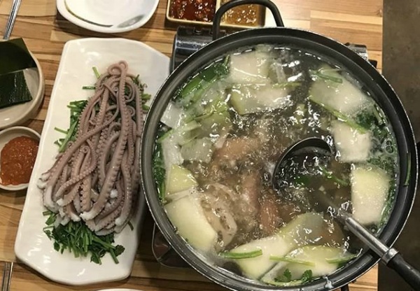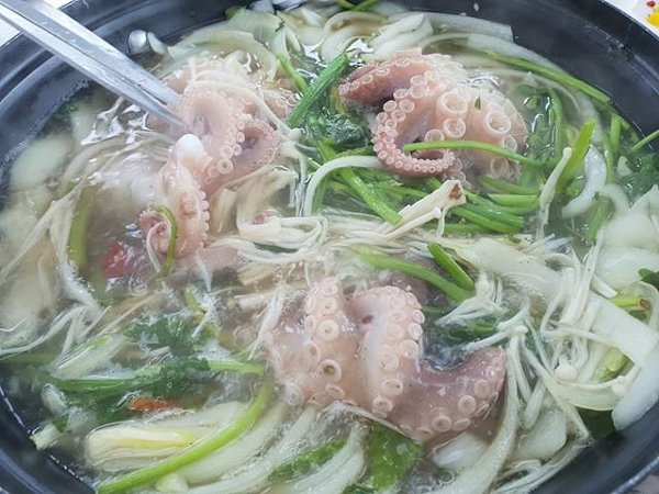 쫄깃한 쭈꾸미와 시원한 국물이 특징이다.