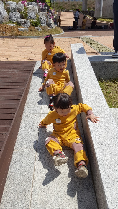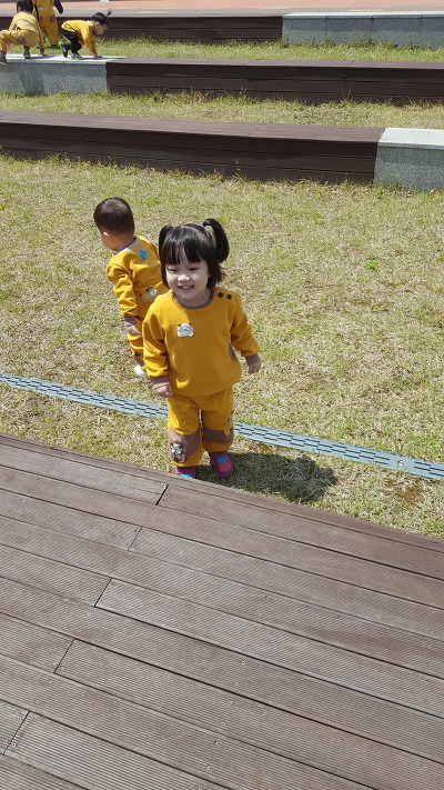 커다란 블록 속에 들어가기도 하며 쌓기 놀이도 하고~