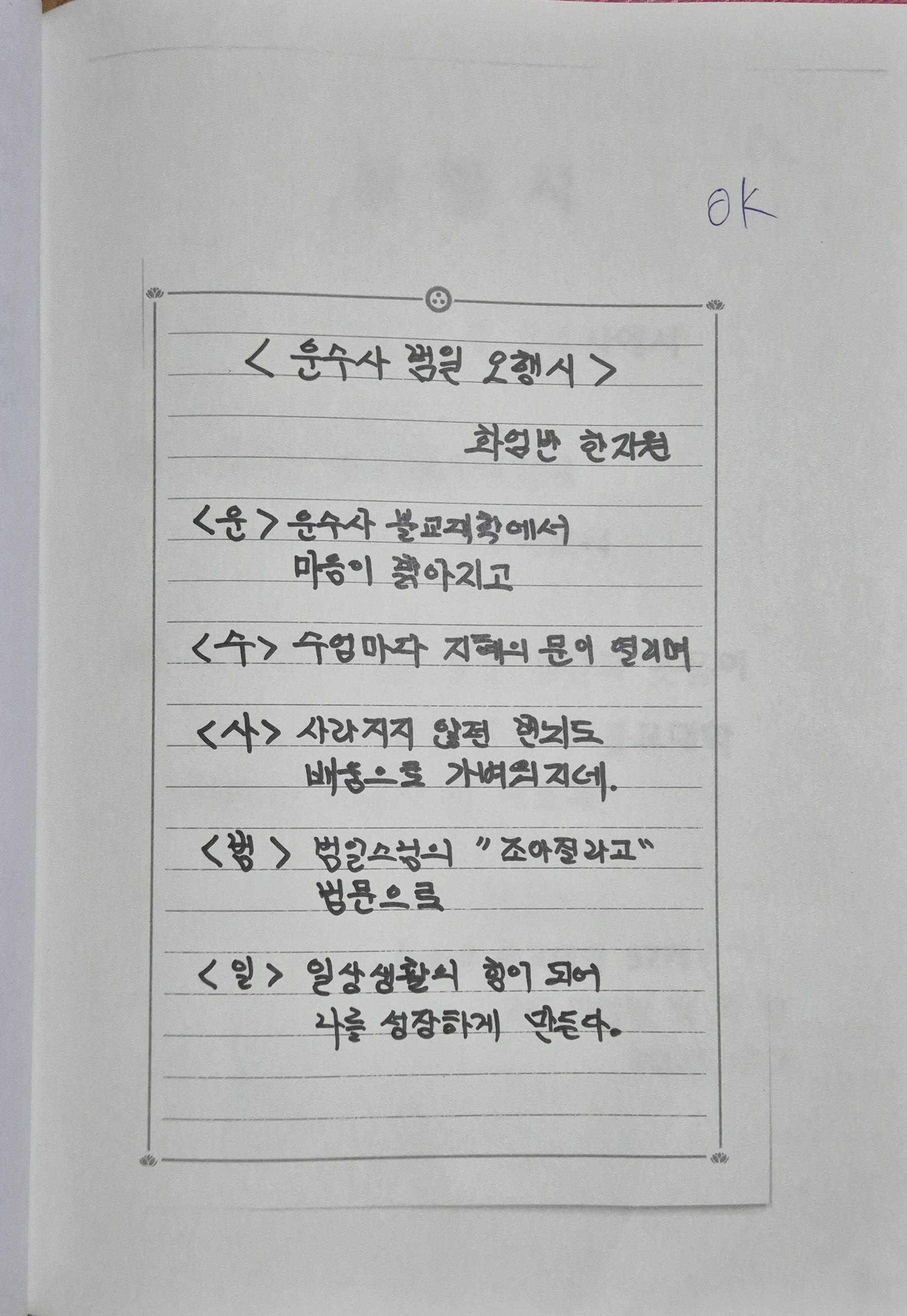 <사> 사라지지 앓던 번뇌도 배움으로 가벼워지네.