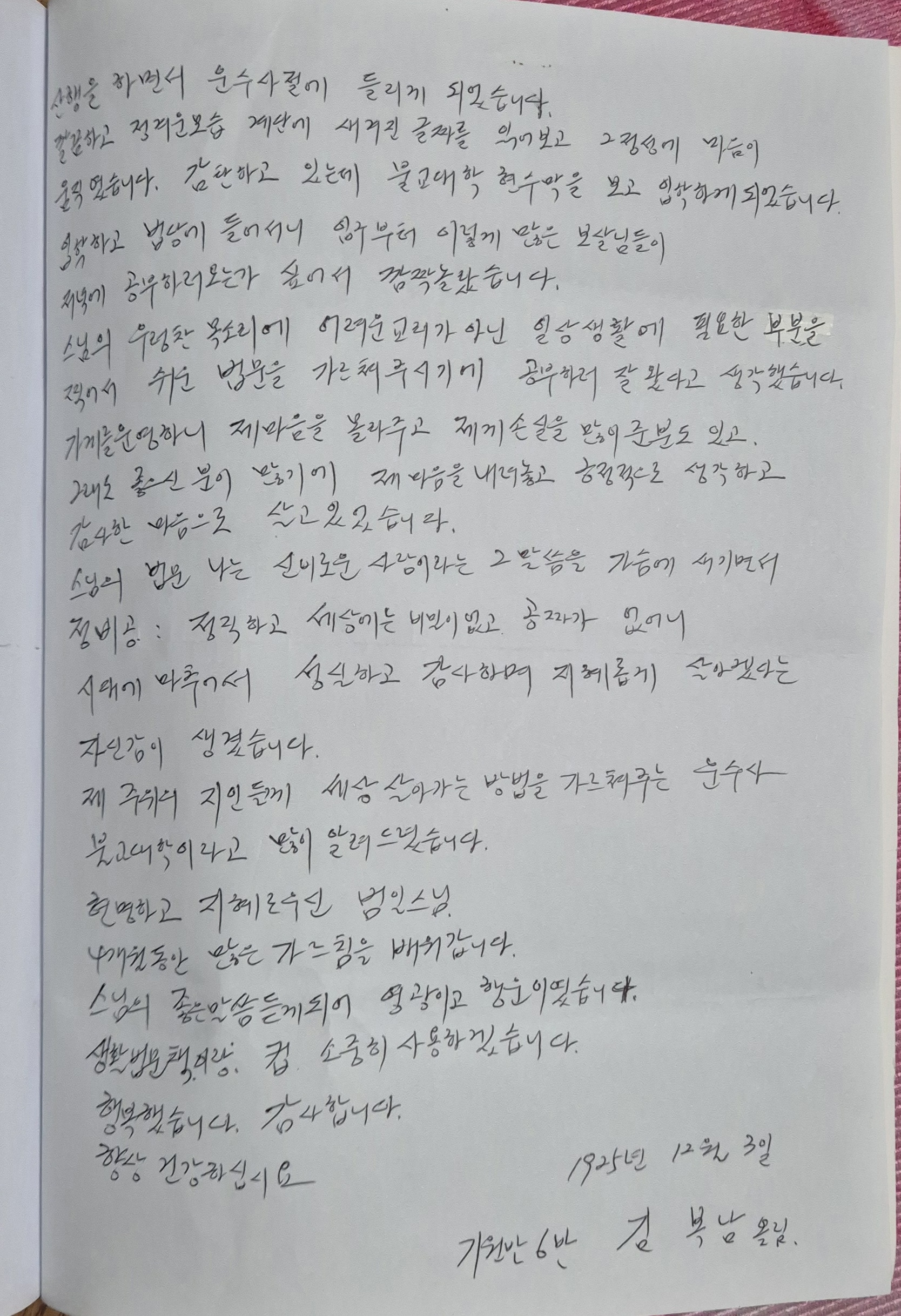 스님의 좋은 말씀 듣게되어 영광이고 행운이였습니다.