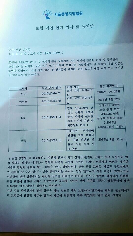 보험사쪽에서5월4일 지연신청을 했는데