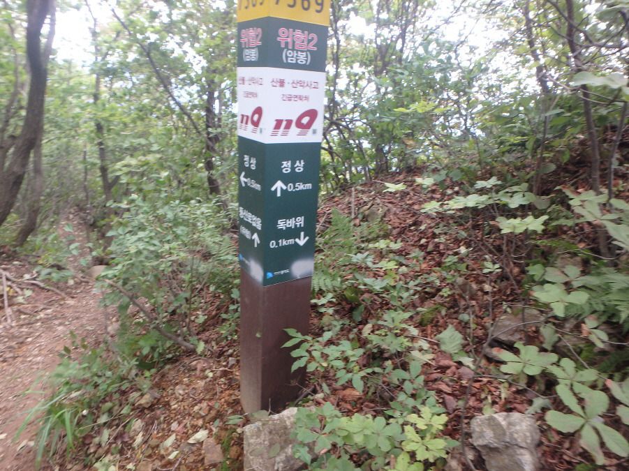 (11;22) 119 소방서 독바위 안내목(독바위0.1km/정상0.5km/등산로 없음)입니다.