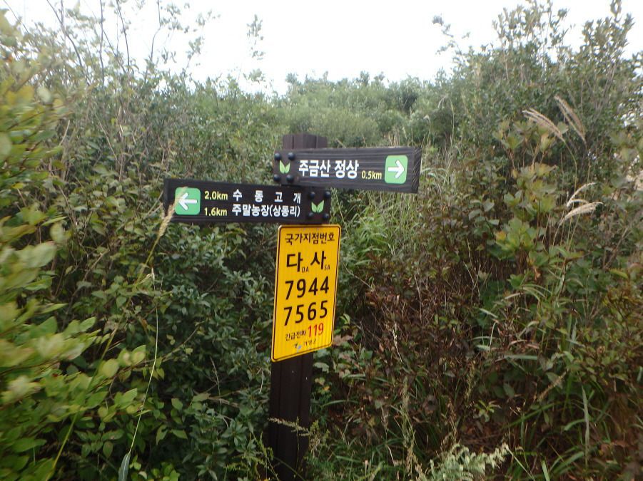 (11;18) 이정표(주금산정상0.5km/수동고개2.0km/상동리주말농장1.6km) 입니다.