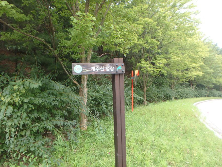 14;35 골프장입구 3거리 이정표(개주산 2.3km) 입니다. 산행종료 합니다