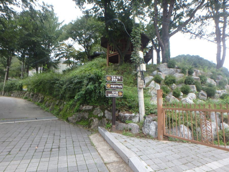 (09;26)주차장 좌측 끝부분에 이정표 안내판(주금산가는길/민속마상공연장/전시관 관리사무소) 입니다.