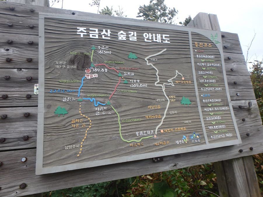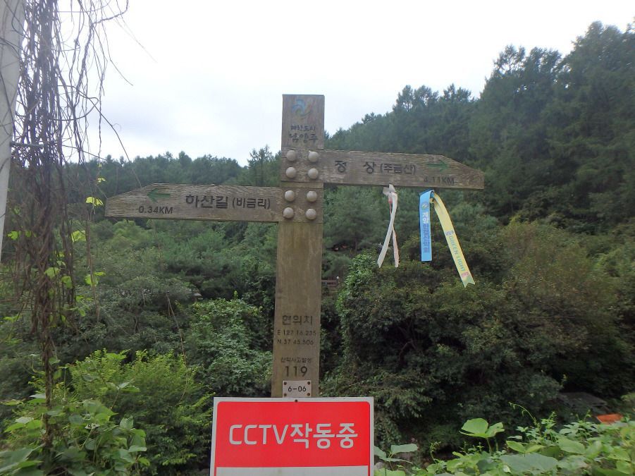 (12;09) 이정표(개주산3.8km/상동리등산로입구4.3km/주금산0.8km)입니다.
