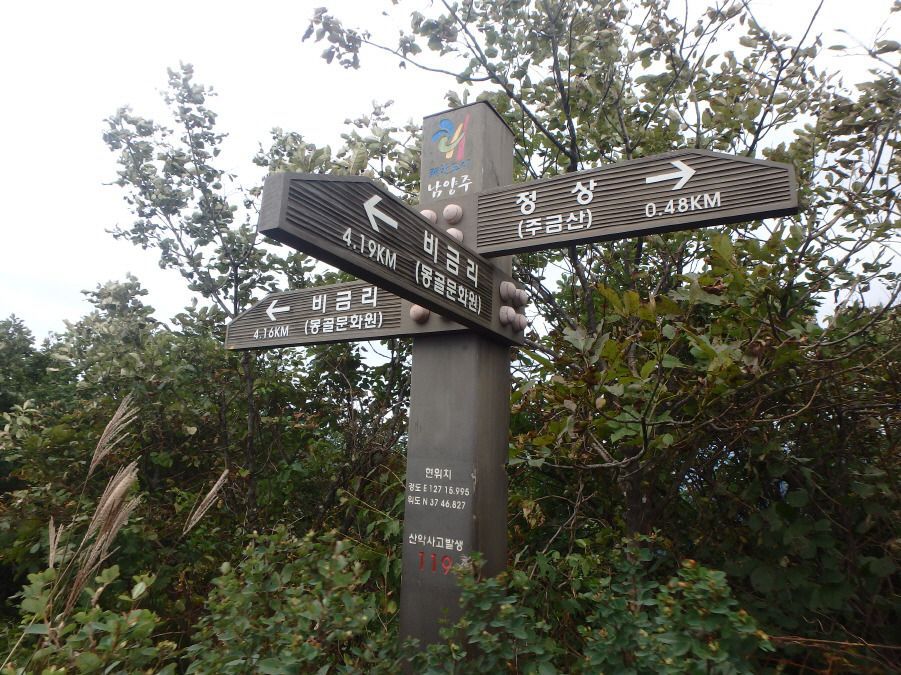 (11;18~11;21)[3분]이정표(주금산정상0.48km/비금리몽골문화원4.16km/비금리몽골문화원4.19km)입니다.
