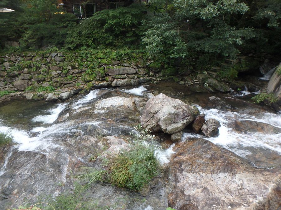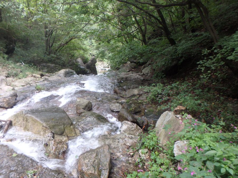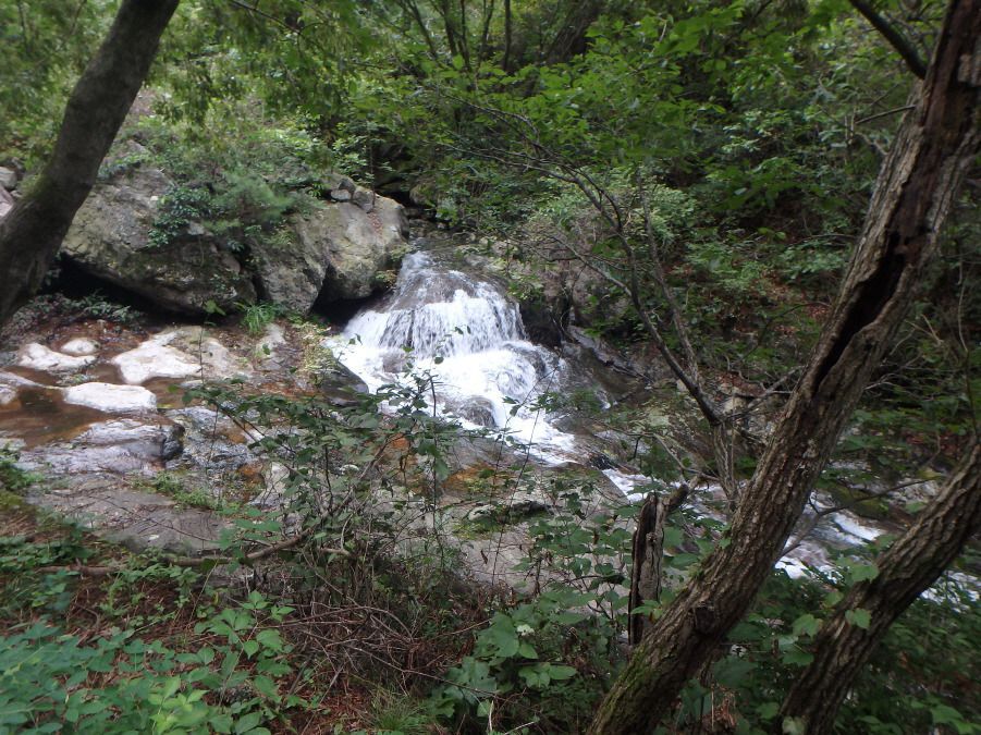 등로는 다시 (09;50) 2번째로 계곡을 가로지른다. 건너는 도중에 좌측 위쪽으로 아래쪽으로 보는 계곡 풍경이 아름답다. 싱그러운 초록잎이 사방에 펼쳐진 길을 기분 좋게 걷는다. (10;04) 쌍폭을 지나니 어느새 비금계곡 합수곡 지점이다. [2.0km][50분]