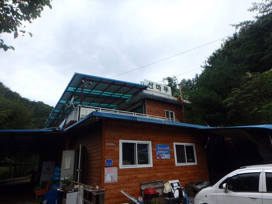 산행들머리 몽골문화촌 버스정류장 길 건너 몽골문화촌 주차장은 텅텅비어 있다. 주차장을 가로 질러 좌측으로 도로입구에 (09;26)이정표 안내판(주금산가는길/민속마상공연장/전시관 관리사무소) 서있다. 도로 따라 조금 가니(09;27) 이정표(주금산 가는길)표시판 이 녹색철망울타리에 걸려있다. 그리고 반대편에 이정목(주금산정상4.67km) 서있다. 좌측에 수량이 풍부한 비금계곡을 끼고 차도 따라 오른다. (09;29)주금산 숲길 안내도 만나고(09;35) 비금계곡 물소리를 들의면서 차도 따라 오른다. (09;36)이정표(주금산정상4.11km/비금리0.34km)따라 좌측 아래길로 진행한다. 좌측으로 계곡을 끼고 걷는다. (09;38) 산마루산장이다.
