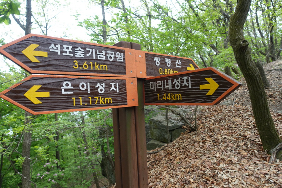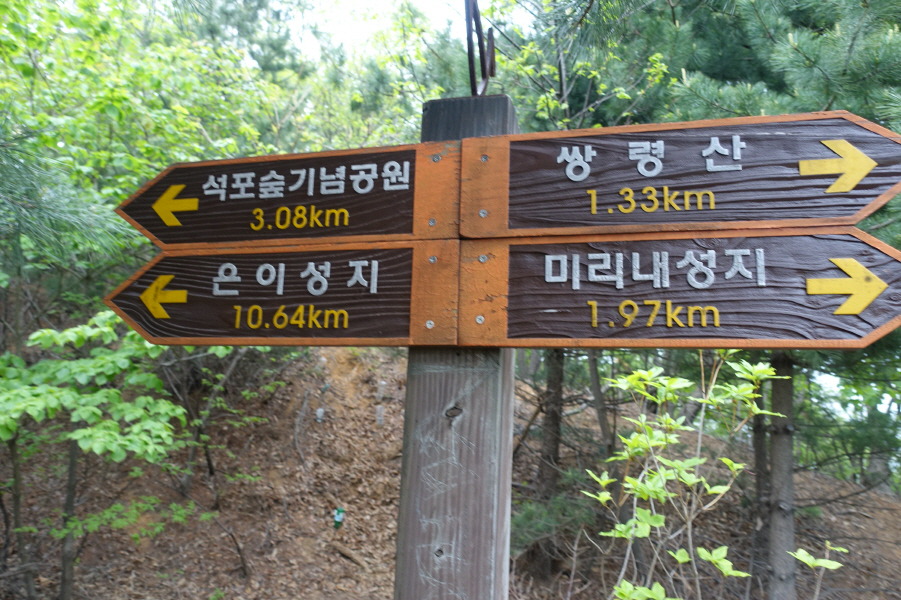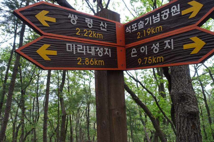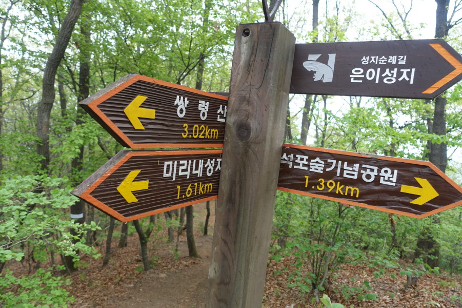 (13;24)이정표(석포숲기념공원2.19km/은이성지9.75km/미리내성지2.86km/쌍령산2.22km)입니다.