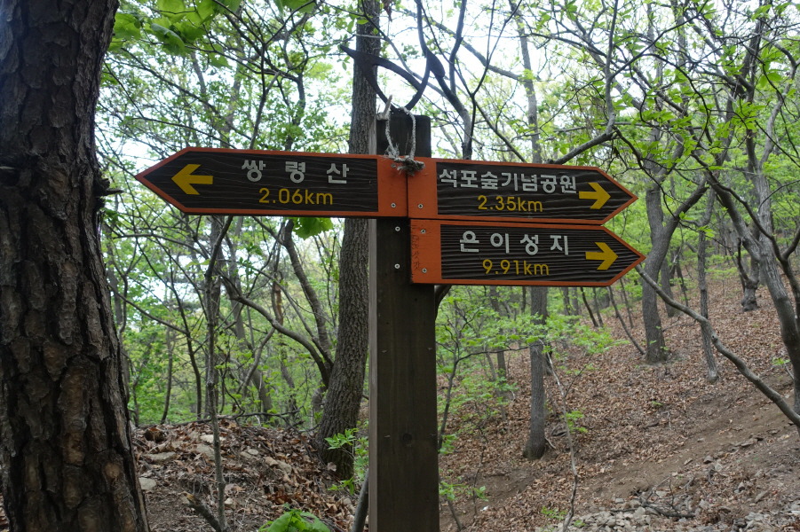 (13;20)이정표(석포숲기념공원2.35km/은이성지9.91km/미리내성지2.70km/쌍령산2.06km)입니다.