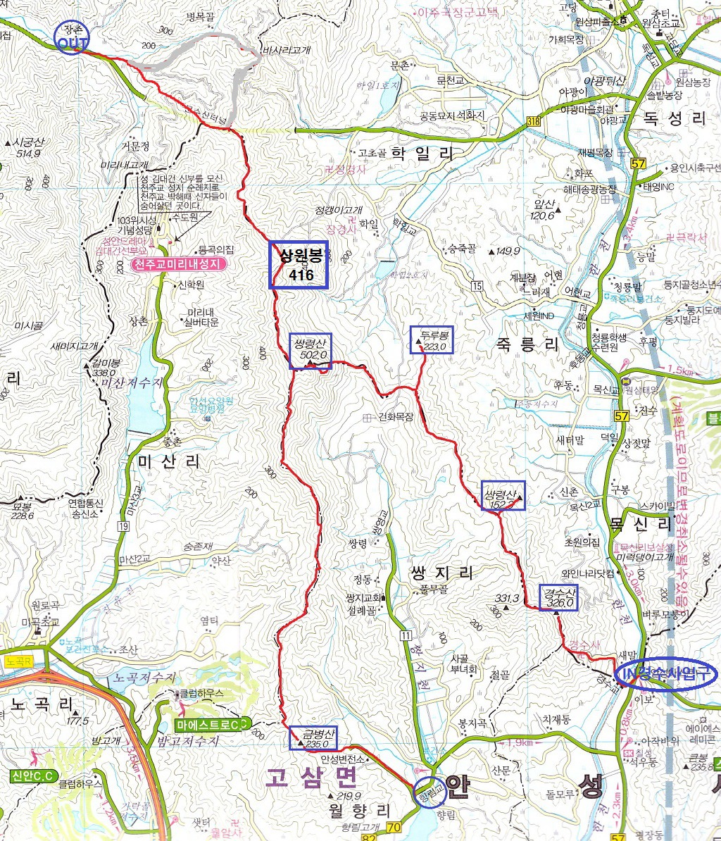 경수산(境水山328m).두루봉(223m).쌍령산(雙嶺山502m).상원봉(408m)./경기 안성. 용인