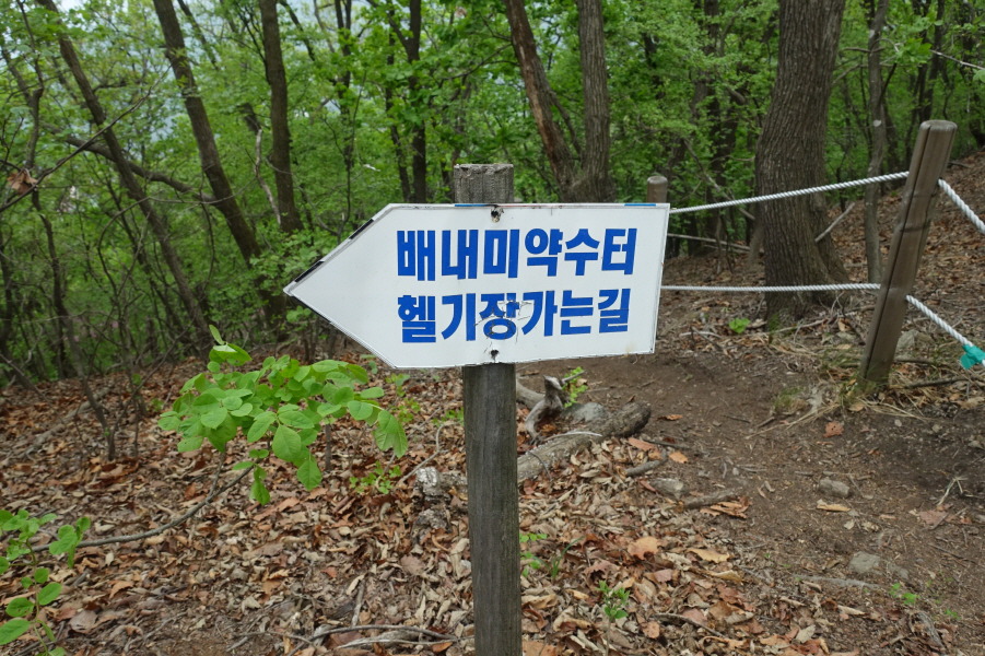 (12;56) 미리내성지 갈림길 표지판(배내미약수터/헬기장가는길)입니다.