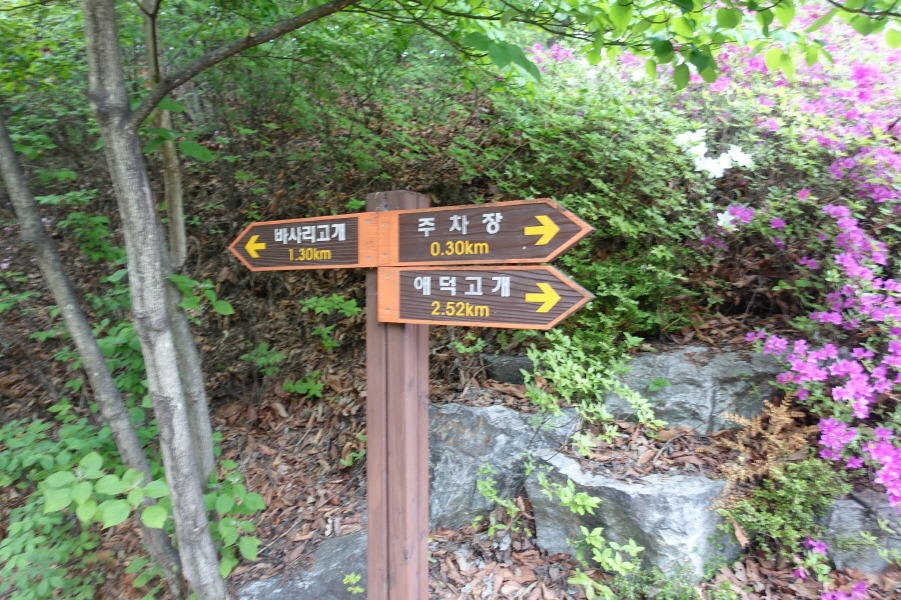 (14;05) 이정표(주차장0.86km/주차장국도1.56km/에덕고개2.9km)입니다.
