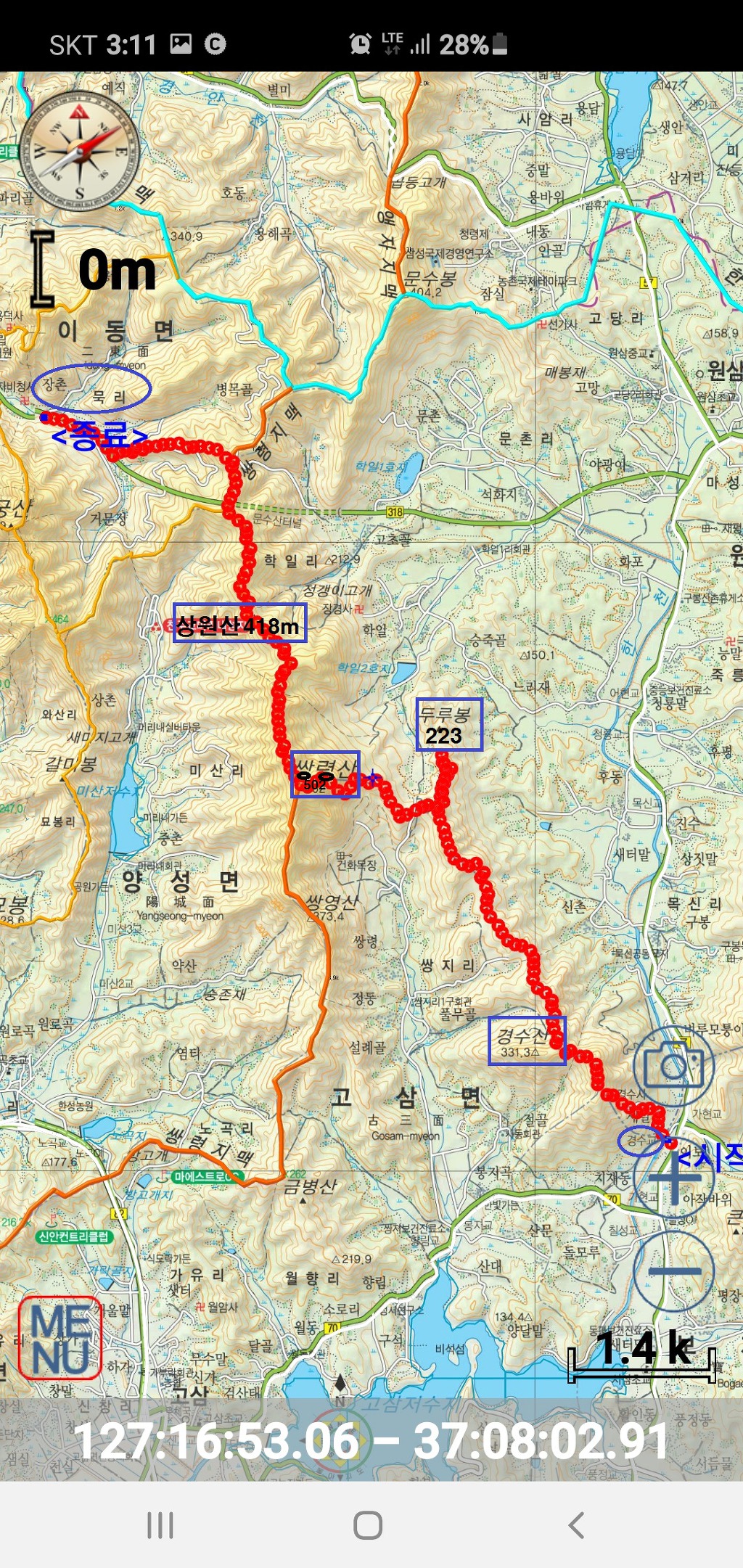 13.5km 320분 [장촌마을 버스정류소](14;25)