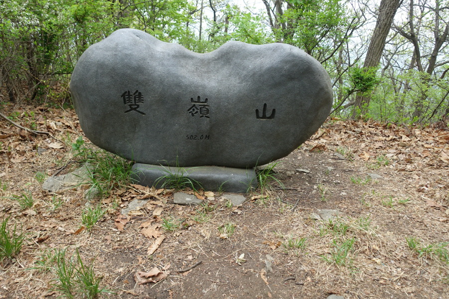 헬기장이다. 선답자 님들의 표지기몇장이 걸려 있고 헬기장에서 우측으로 약2m 이동하면 나무에 대구 김문암님이 건 쌍령산 표지판 있고 바로 앞에 커다란 쌍령산 정상석(이면은 한글)이 있다.