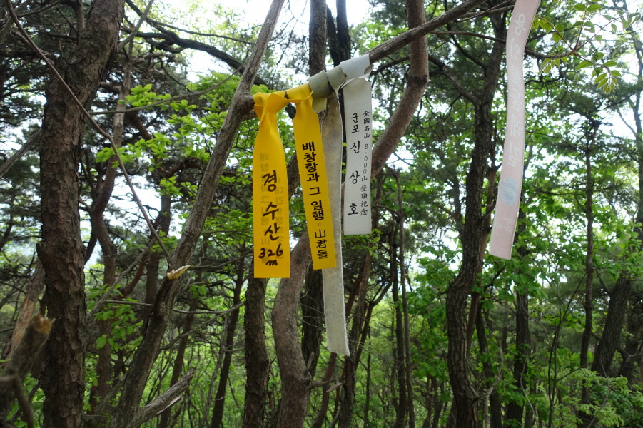 09;50 故 한현우님의 조그만 비닐코팅 경수산 정상표지판입니다. 삼가 고인의 명복을 빕니다.