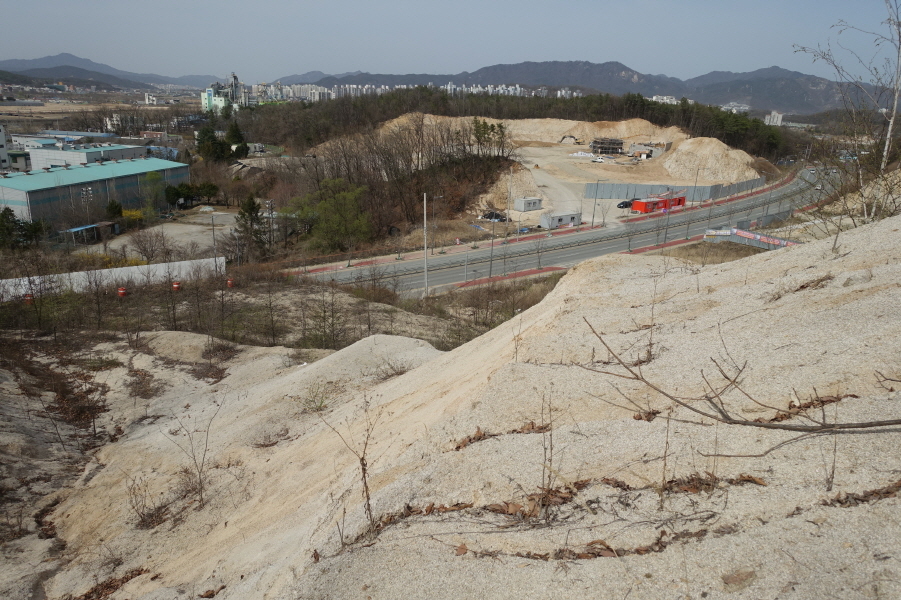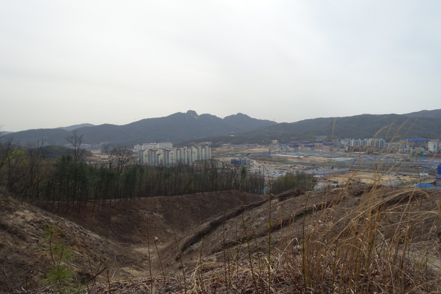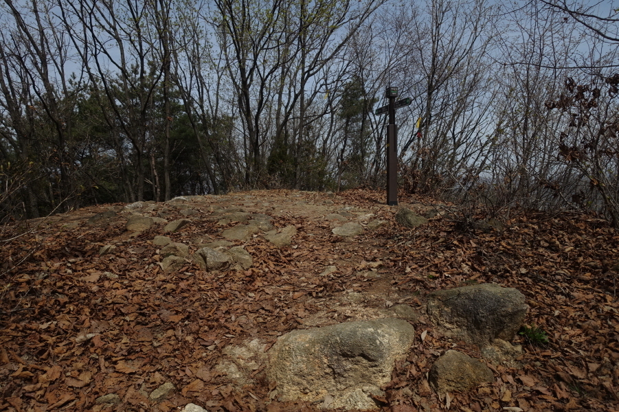 정상은 널따란 공터다. 정상을 알리는 표지판이나 표지기도 없는 동네 뒷산인데 수정산이란 이름을 얻은 연유는 알지못한다. 정상에 수정같이 하얀 돌이 있어 붙여진 이름이라고 하는데 돌은 커녕 아무것도 없다.
