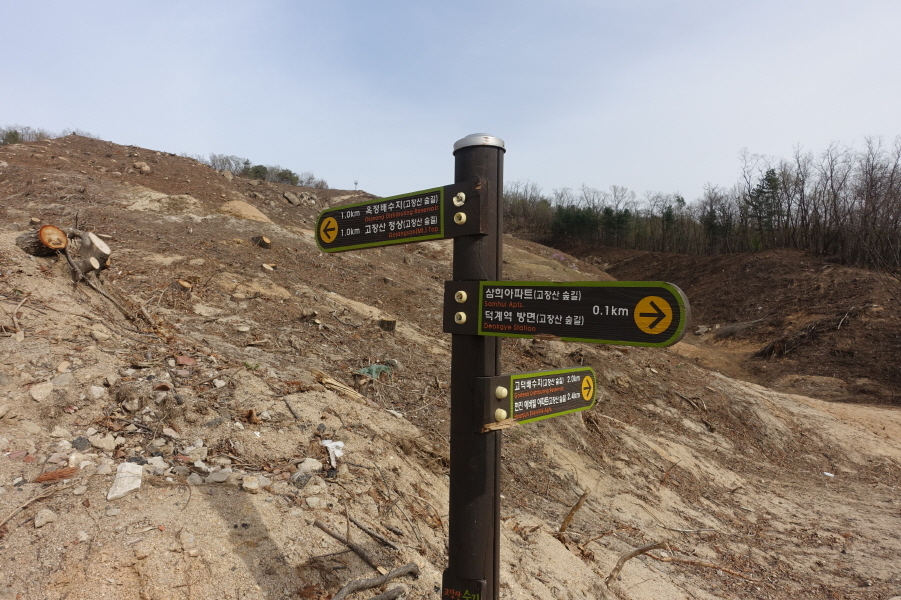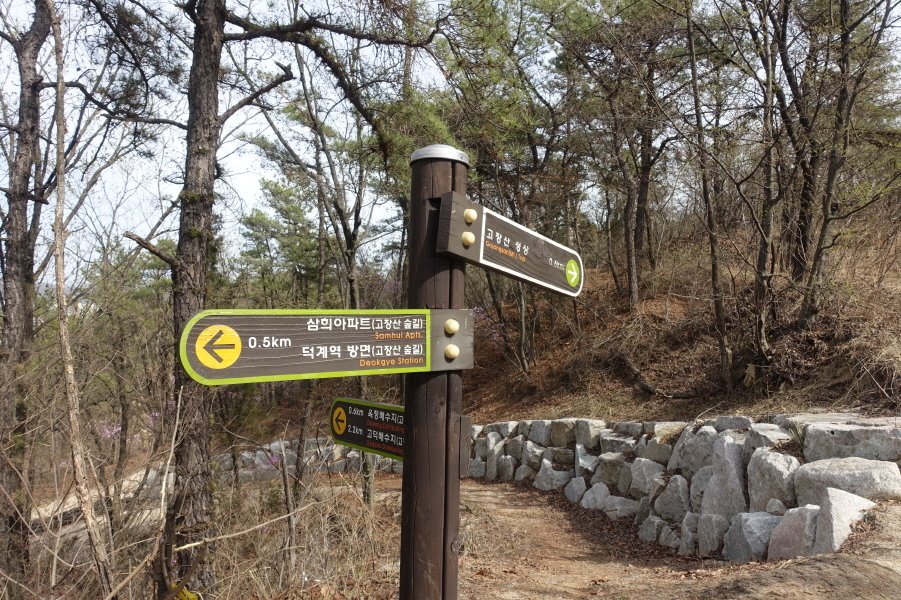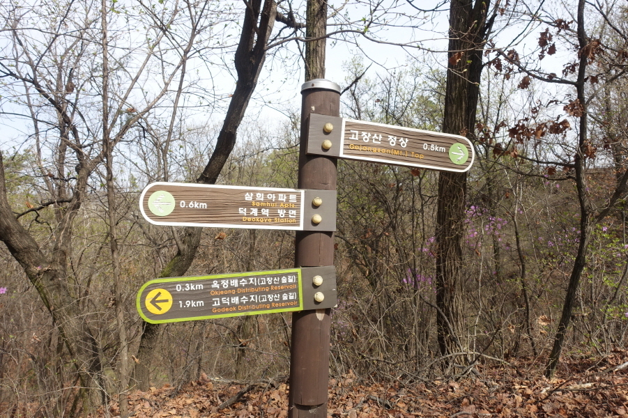 (15;01)이정표(고장산정상0.6km/옥정배수지0.3km/고덕배수지1.9km/삼희아파트.덕계역방면0.5km)입니다.