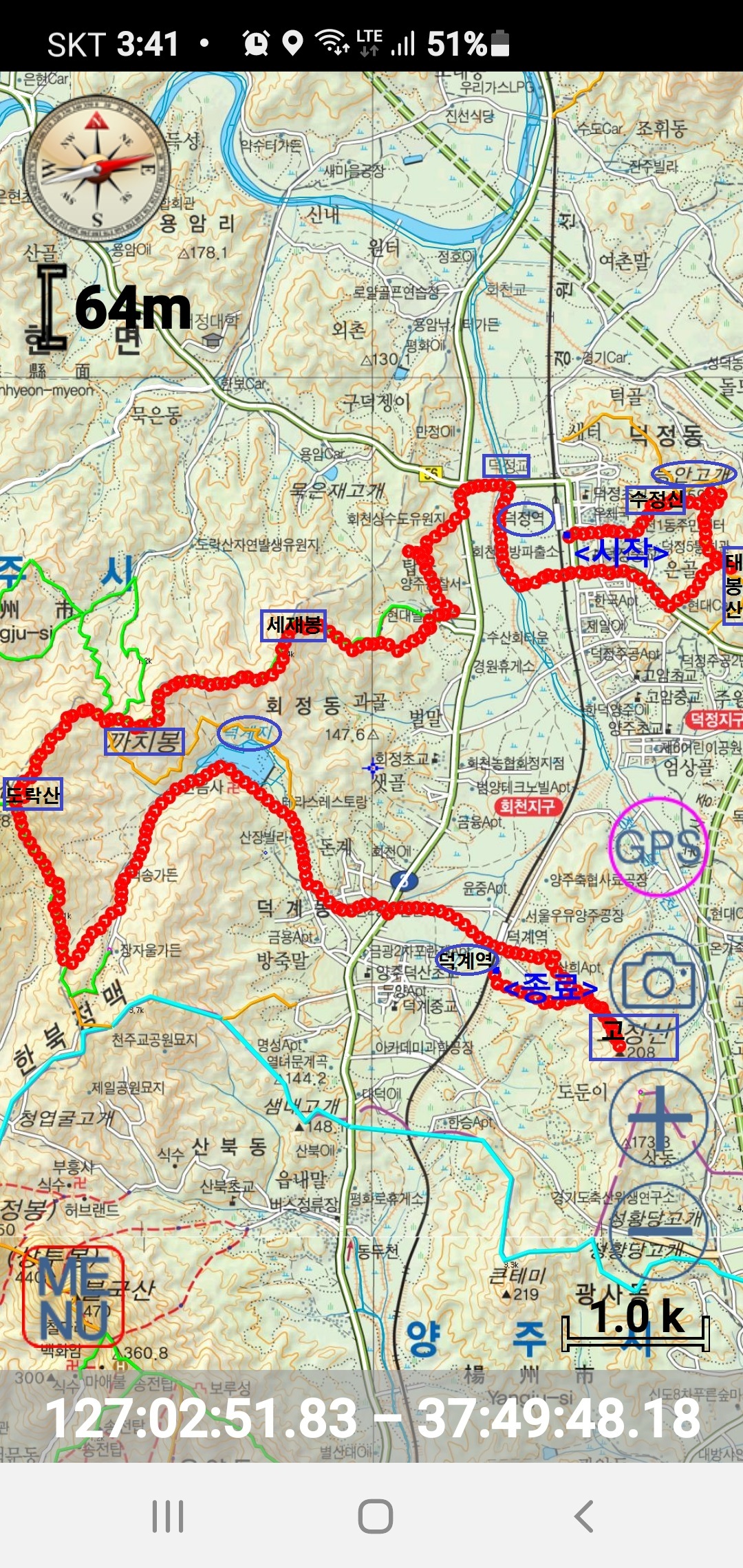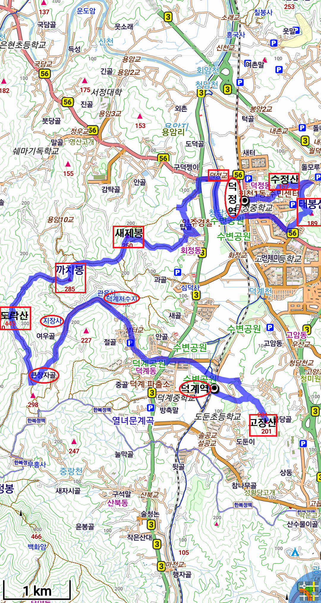 덕정역.수정산.태봉산.덕암교.세재봉.까치봉,도락산.고장산 실트랙입니다.