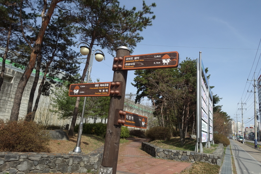 (10;36)이정표(청담체육공원0.4km/덕정역0.2km/덕계역3.4km/김삿갓쉼터4.4km/회암사지5.1km) 입니다.
