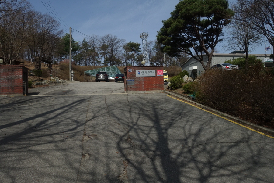 우향 소망장레식장을 낀 1차선 아스팔트 도로를 따라 완만하게 오르면 (11;03)서울 국유림 양주분소다.[0.5km][8분]