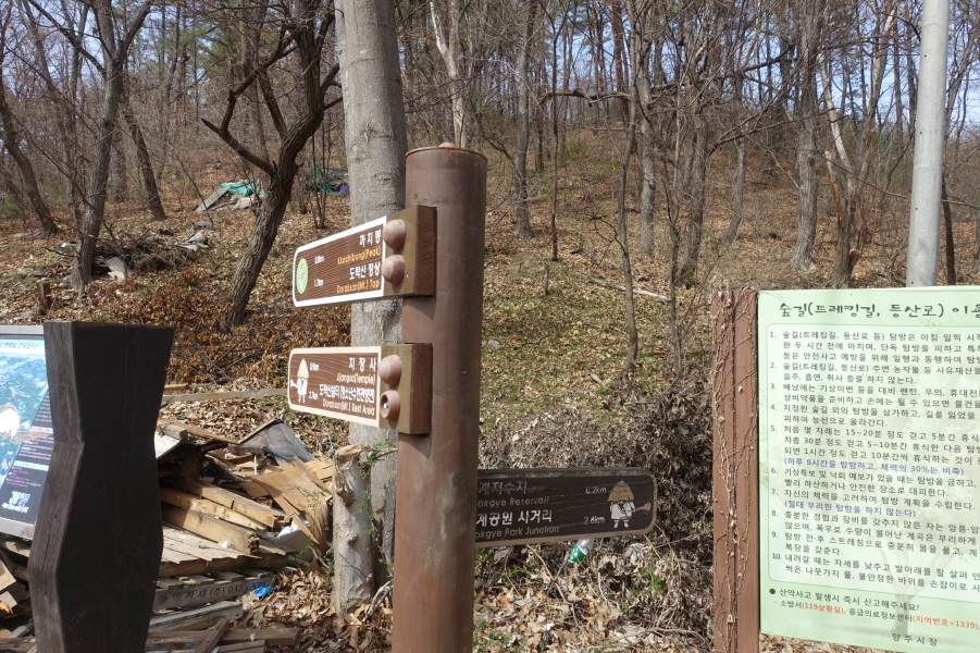 (15;04)이정표(고장산정상0.5km/옥정배수지0.3km/고덕배수지1.9km/삼희아파트.덕계역방면0.6km) 입니다.