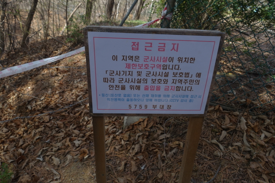 11;14 탑동약수 방향 등로는 군부대 철조망을 따르게 되고 '접근금지/5759부대장' 표지판과 금줄을 넘어 진행하나 길이 묵어 진행이 어려워 되돌아 나옵니다. 0.5km/10여분 왔다 갔다 알바아닌 알바를 합니다.
