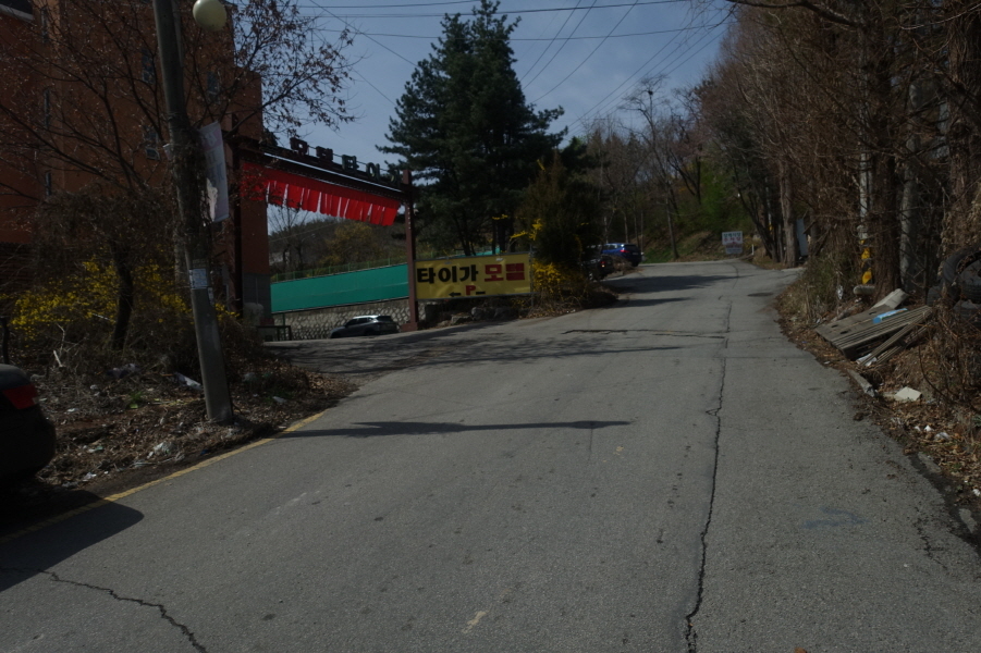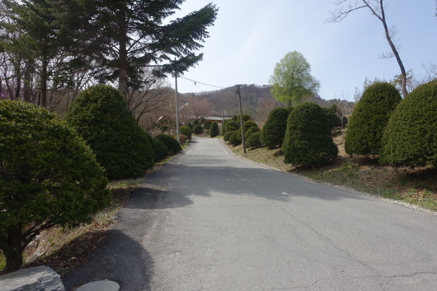 마을 도로 따르다가 등로 초입을 동네분한테 물으니 공장 마당으로 들어가 정문으로 나와 도로따르다가 운동시설 갖추어진 등로에 연결된다.