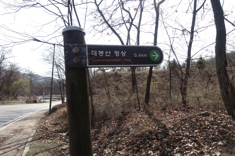 (10;01)능안고개 태봉산 들머리 이정표(태봉산 정상 0.6km)입니다.