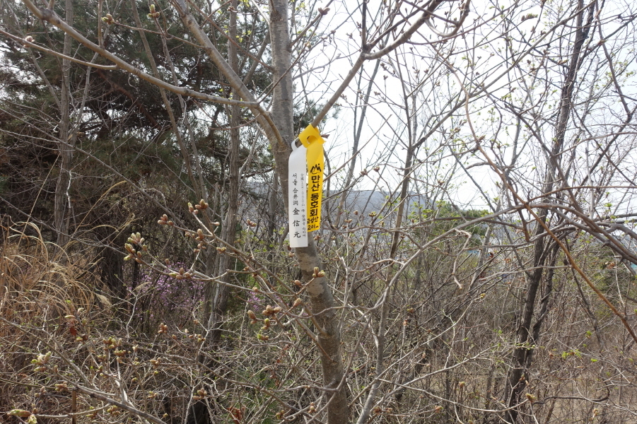 15;05~15;07[2분] 고장산정상 만산동호회와 김신원 회장님 표지기입니다.