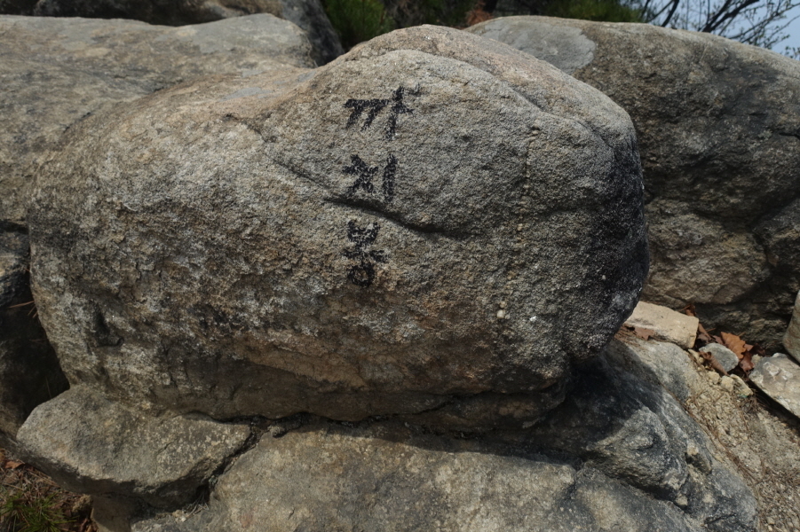 12;30~12;32[2분]까치봉정상 바위에 매직으로 쓴 정상표지입니다.