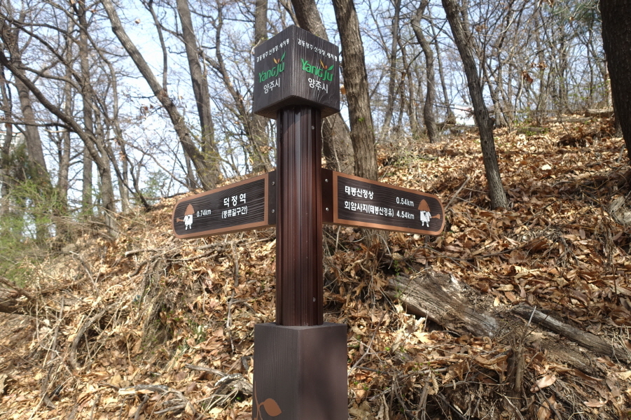 (10;25)이정표(덕정역0.7km/회암사지.태봉산경유4.54km/태봉산정상0.54km)입니다. 덕정역에서 이곳으로 와서 태봉산 먼저하고 수정산거쳐 덕정4거리 국유림 양주분소에서 제새봉.까치봉.도락산이 좋을 듯싶습니다.