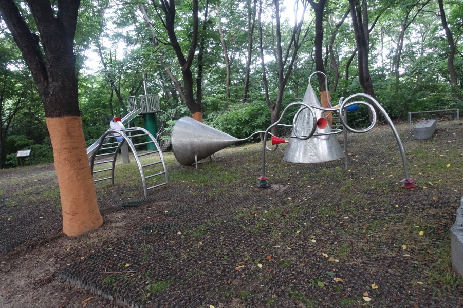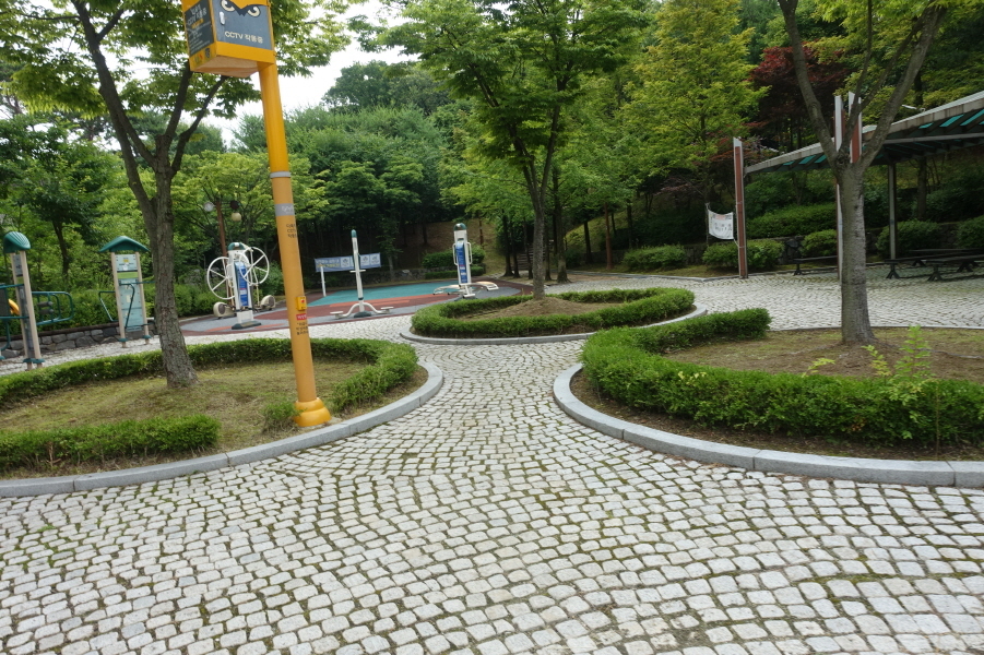 부드러운 잘정비된 등로 따르니 (09;57) 조형물과 체육시설이 있다. (10;00) 배수지 정문에서 직접안으로 들어가도 되나 배수지 울타리 우측으로 데크등산로 있어 등로 따르니 (10;02) 부천 천문과학관 건물 뒤쪽으로 진행 우측으로 능선따라 오른다. 정상직전 3거리에서 약2m거리 (10;10)춘의산 정상을 왕복한다.[1.2km][27분]